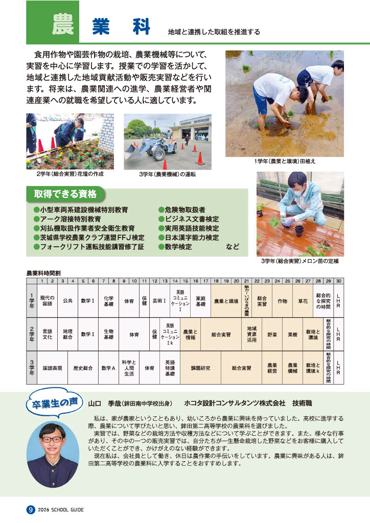 〇農業科では栽培から販売まで実践的な学習を行い目標達成に向け日々学んでいます!