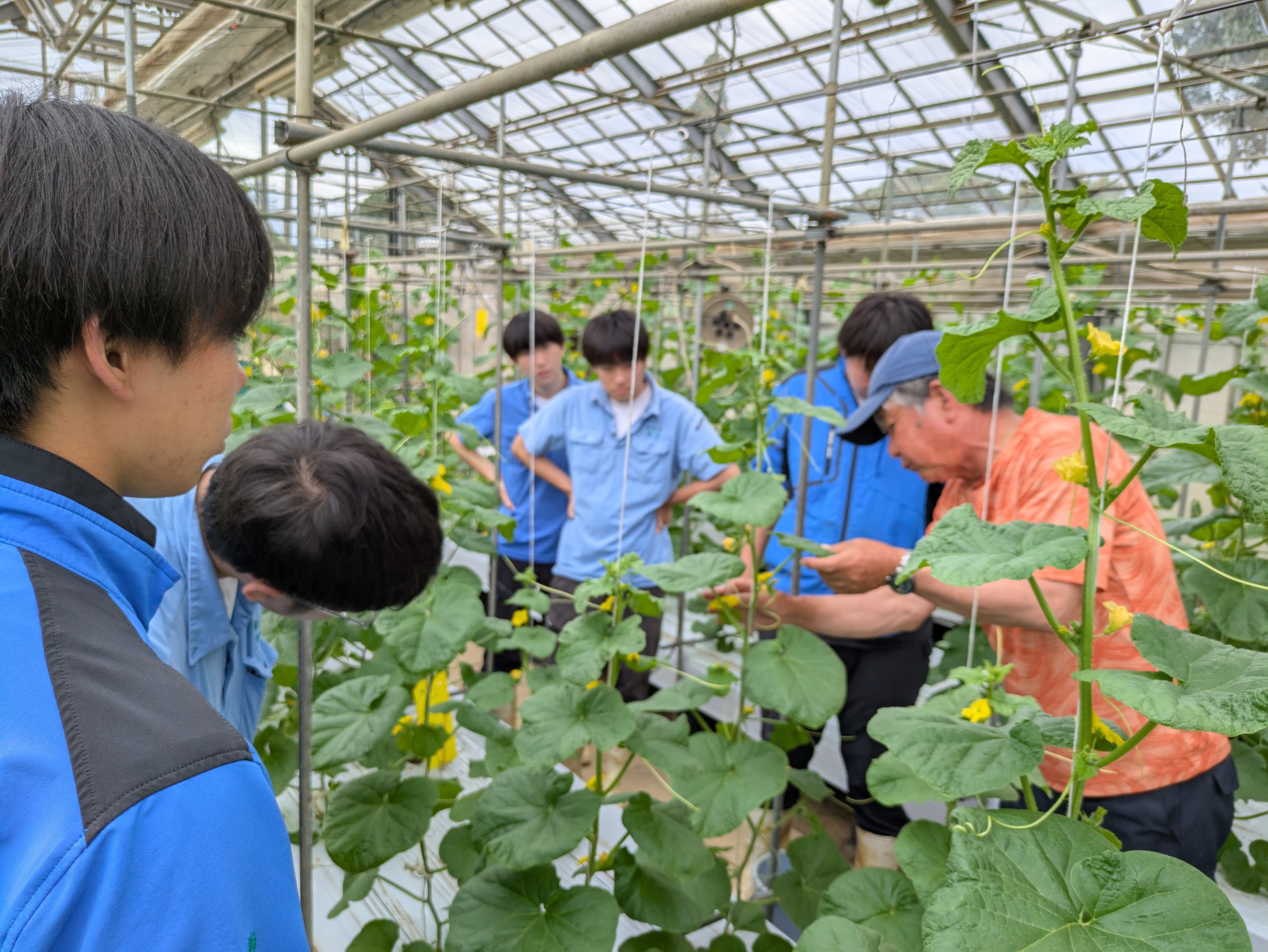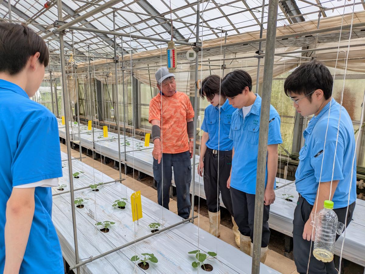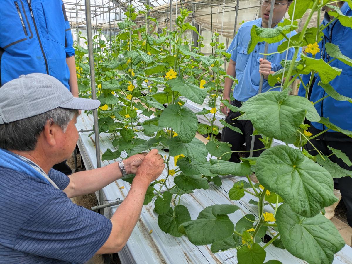 〇9月22日(月) 山口先生から丁寧にメロンの栽培管理技術を教えていただきました。