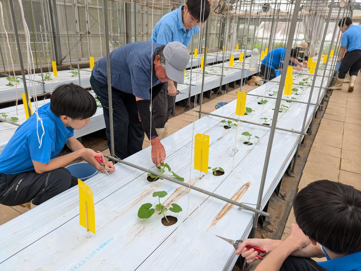 〇9月17日(水) 山口先生からメロンの余分な芽を取る技術を教えていただきました。