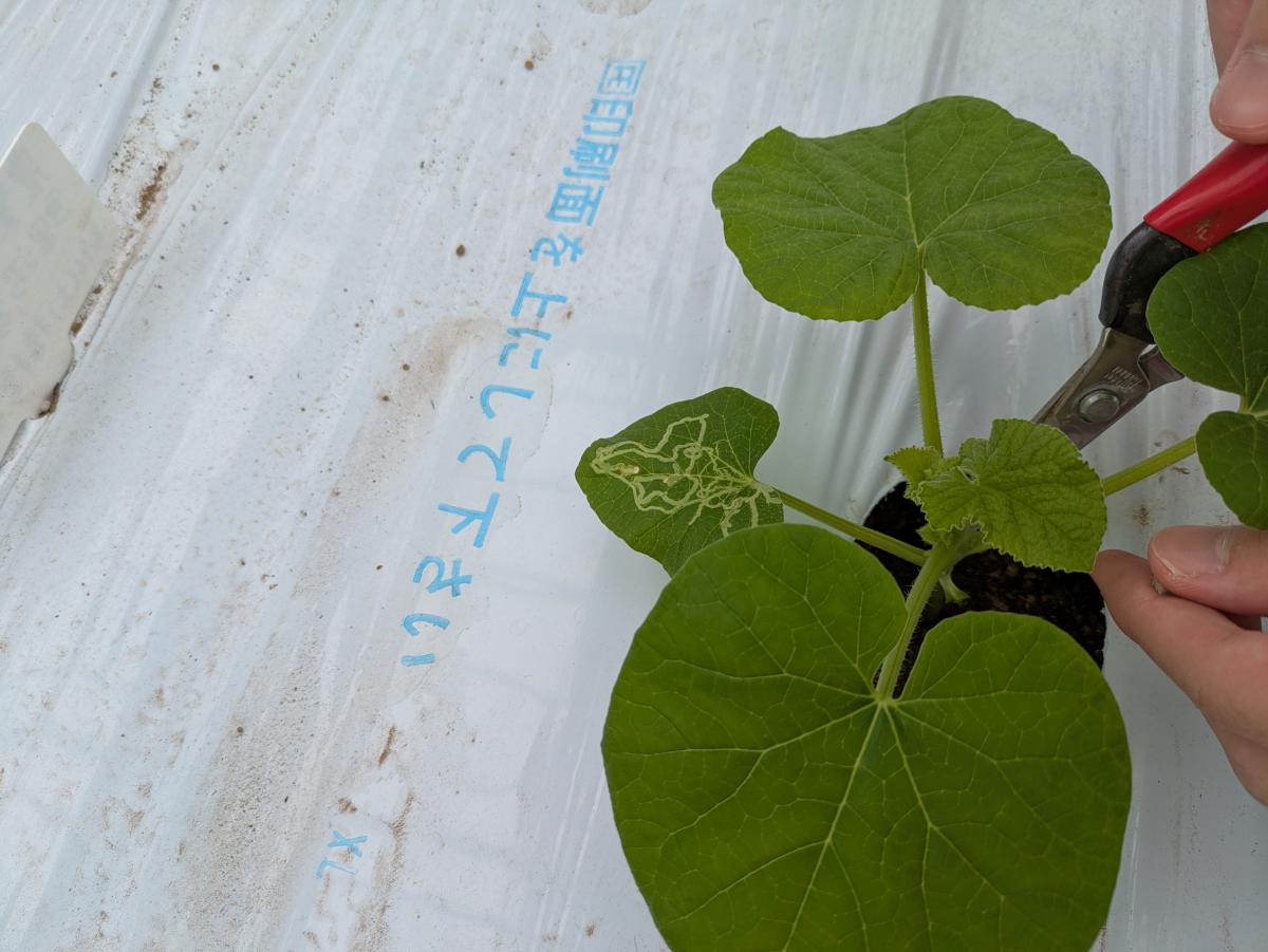 〇9月25日(木) メロンの葉をハサミで慎重に切ることができるようになりました!