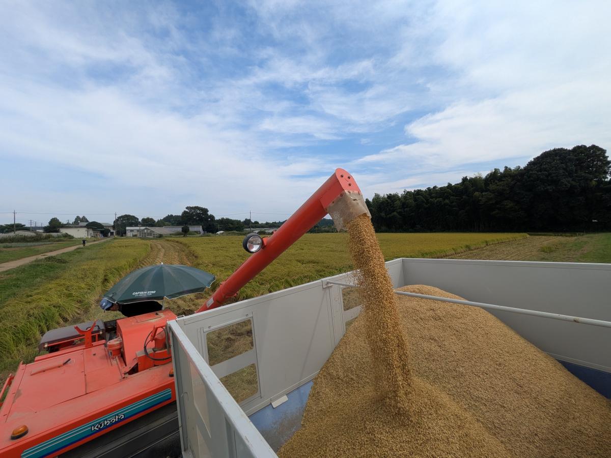 たくさんのお米が収穫できそうです。コシヒカリの稲刈り後は、マンゲツもち(もち米)