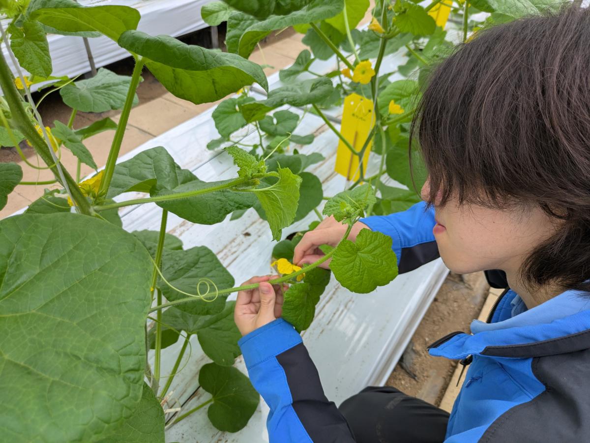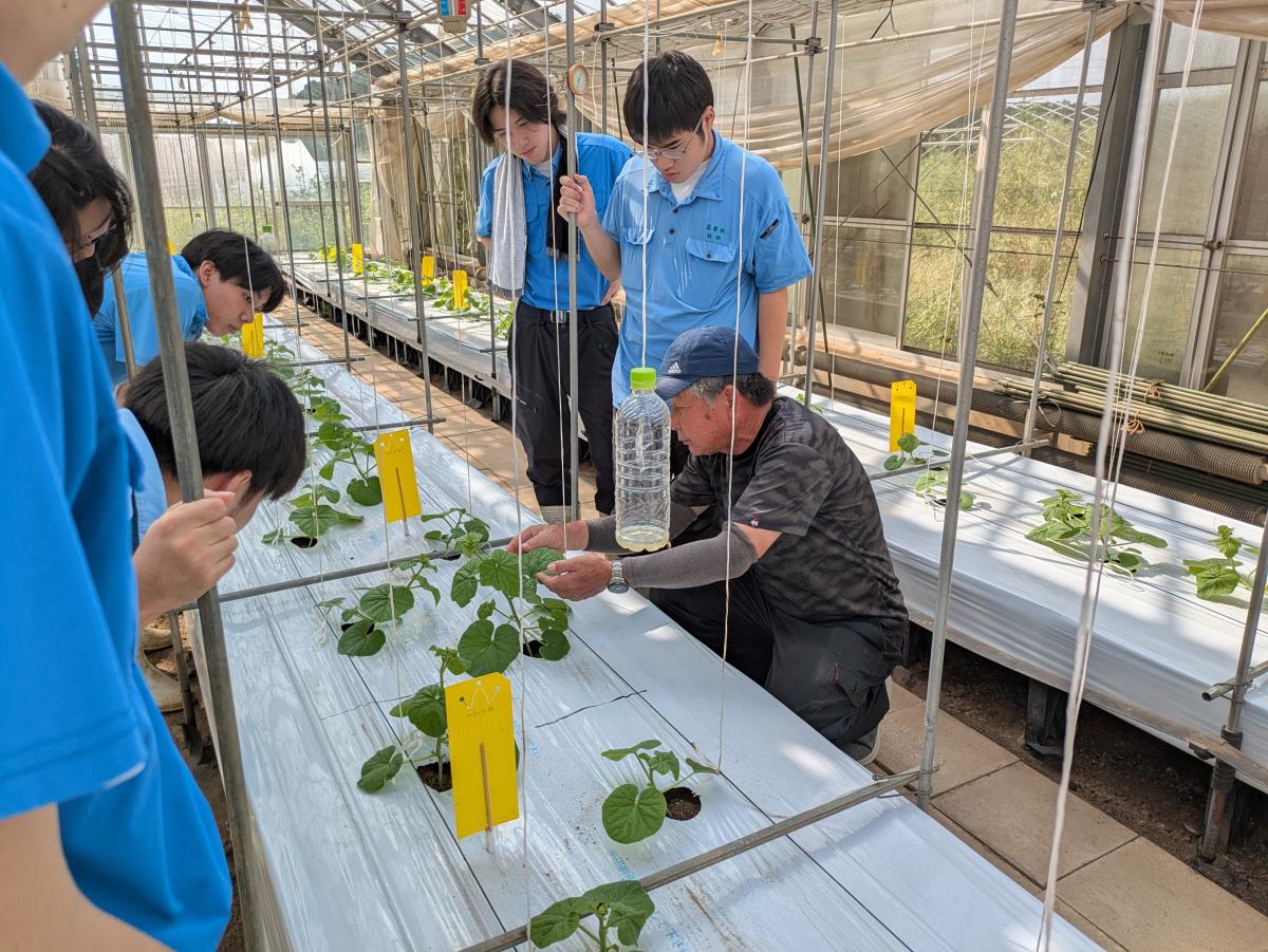 〇10月1日(水)農業科3年生が社会人講師の山口正重様から、メロンの人工受粉方法について教えていただきました。雌しべにしっかり花粉を付けることでメロンが収穫できます!とても大切な実習となりました。
