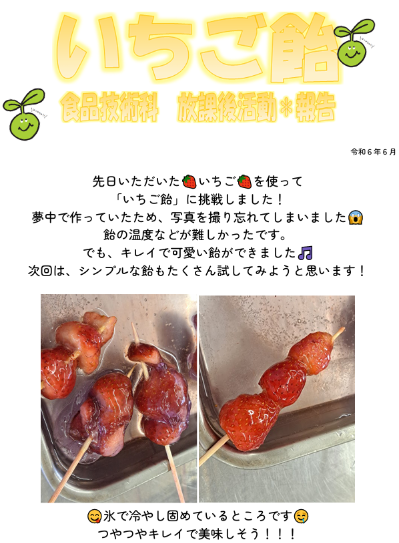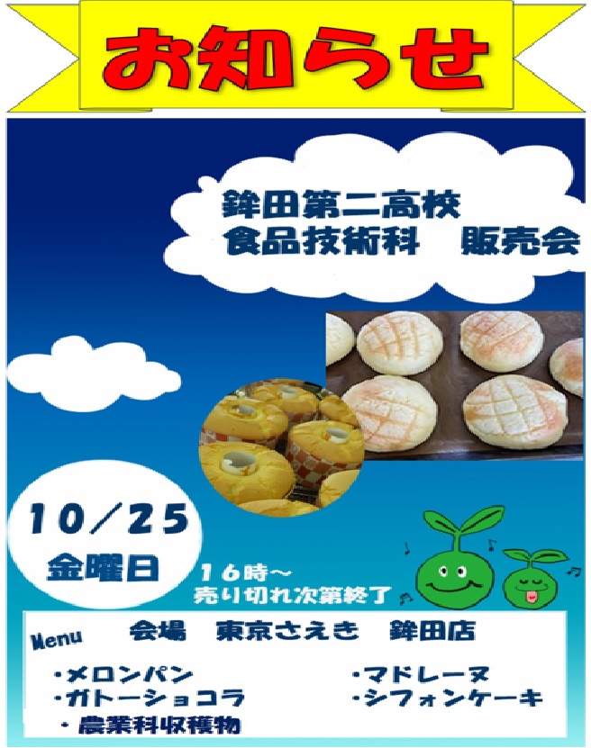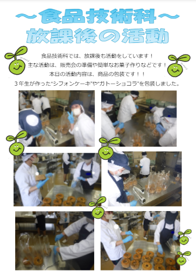 「農業と環境」の実習を通して、栽培から、収穫、袋つめ、販売までを一貫して行うことができました。今回の授業を通して、生徒の皆さんには「食べること」に「感謝できる人」そして、あたりまえの日常の幸せに気付く「きっかけ」になってもらえることを! 食品技術科 職員一同 願っております(^▽^)