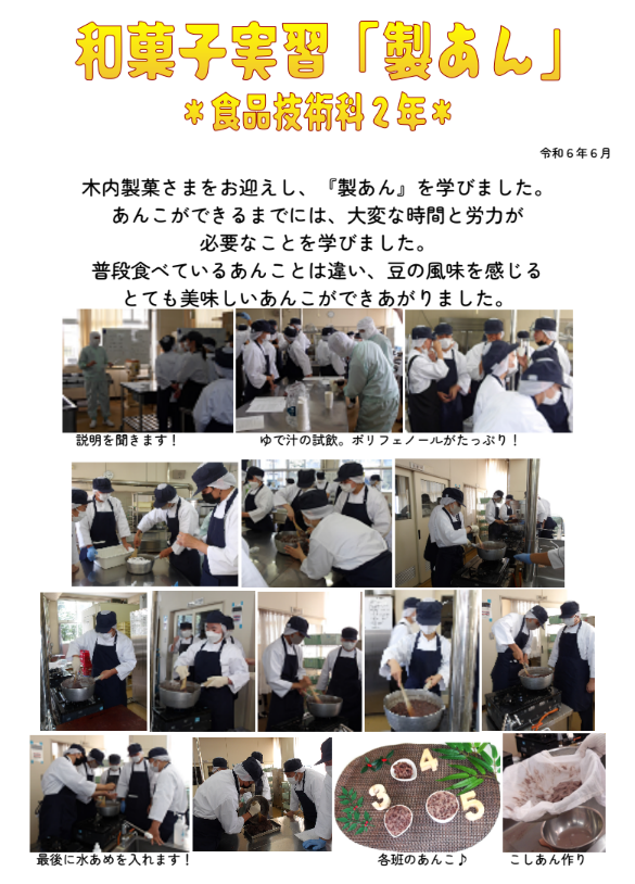 2025.6.16 2年生 和菓子 木内製菓様(社会人講師) をお招きして、「おはぎ」を作りました。