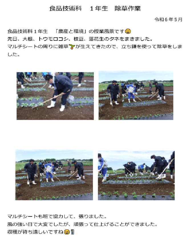 食品技術科 3年生 ノリノリで食品技術科「畑」からの動画アップしました(^_-)