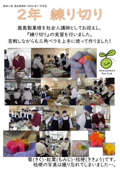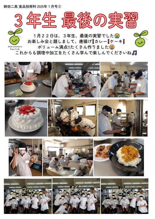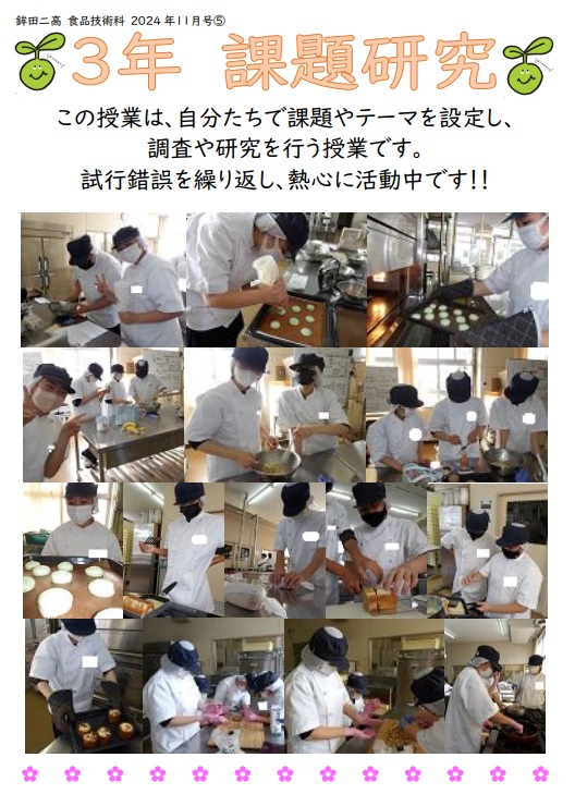 ㉟食品技術科 2025年1月7日(火) 2年生 3年生のメンバーが試作を一生懸命に行っています(^^♪