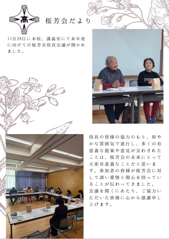 桜芳会では、5月の役員会をはじめ総会を毎年6月の最終土曜日に開催しています。沢山の会員様のご参加をお待ちしています。