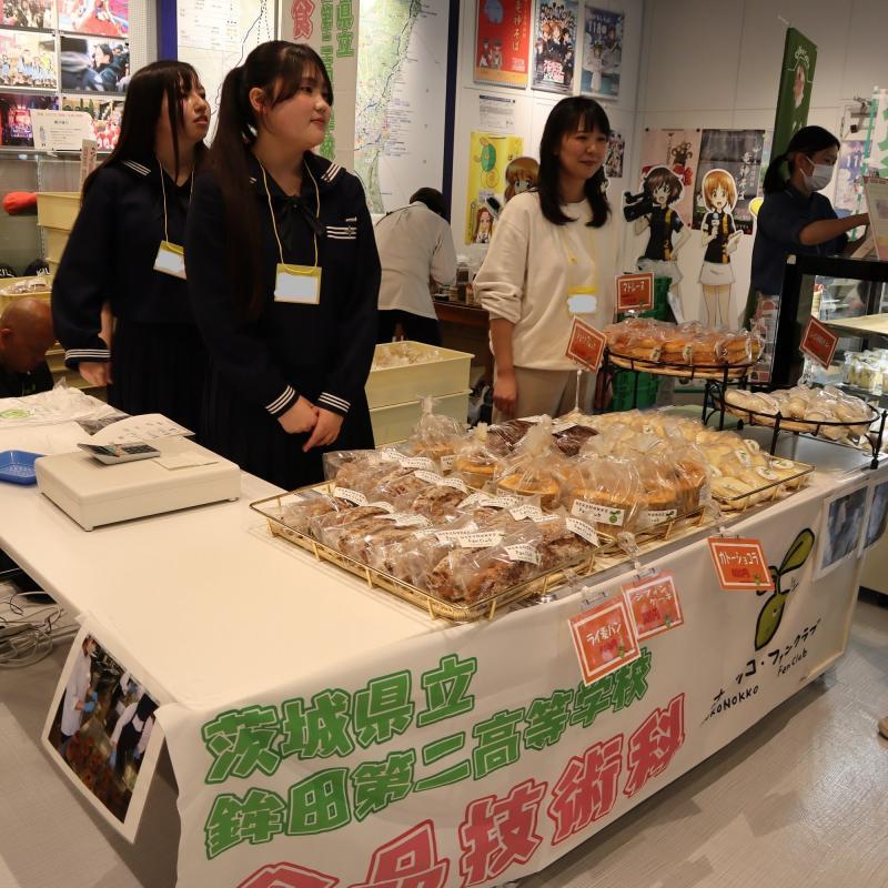 食品技術科の生徒たちが製作した菓子類を、茨城県庁で行われた「いばらきスイートフェア2025」で販売しました。多くの方に来場いただき、14時には完売することができました。