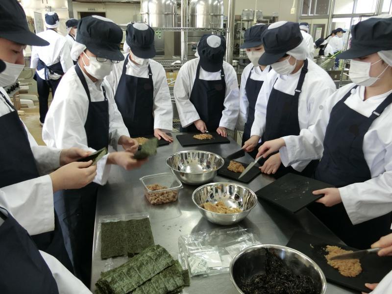 総合学科生活科学系列2年次7名が、地域の方から郷土料理の作り方を学びました。地域の方から郷土料理を学ぶスキルアップ料理講習会は全5回(今回が最終回)実施し、普段は作る機会の少ないさまざまな料理を教えていただきました。
