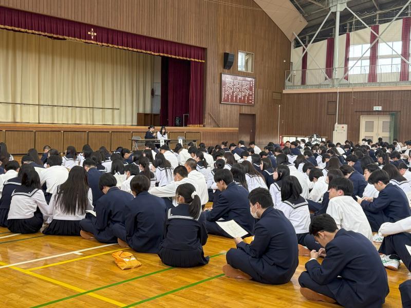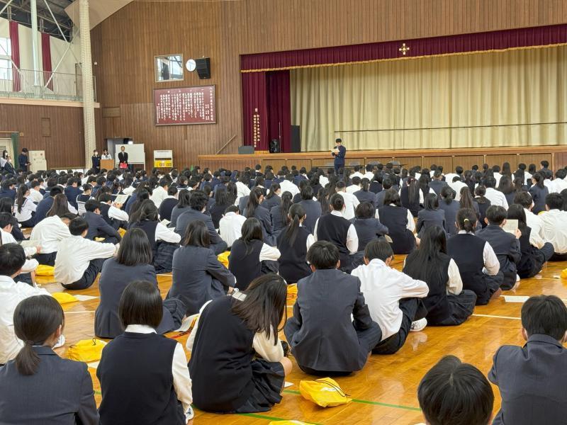 全学年・年次生徒が出席し、『令和7年度 生徒総会』を実施しました。昨年度の事業報告・生徒会費決算報告の後、今年度の事業案・生徒会予算案について慎重な審議が行われました。生徒ひとり一人が、主体的に学校生活に取り組んでおります。