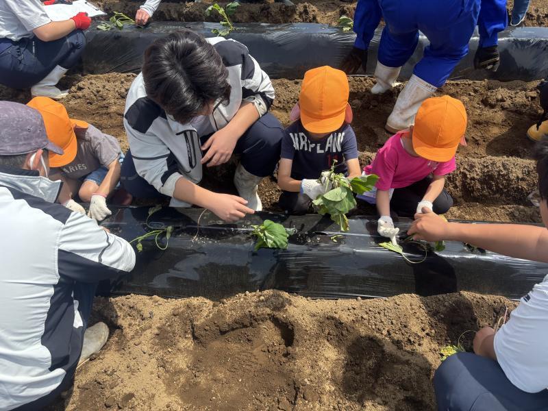 本校農場において、鉾田幼稚園4・5歳児による芋苗植え付けを実施しました。本校農業科2年生は、講師として植え付けの指導を行いました。10月の収穫がとても楽しみです。