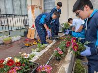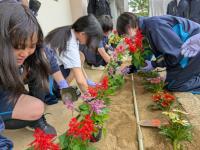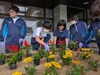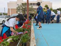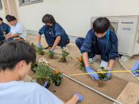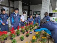 農業科1年生27名が鉾田市役所の花壇にサルビア、ガザニア、ニチニチソウを植えました。黙々と作業をこなし、きれいに植え付けることができました。近くにお越しの際はご覧ください。