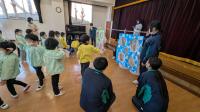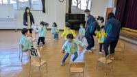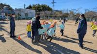 鉾田幼稚園で実習させていただきました。園児たちとフルーツバスケット、的あてゲームをしました。その後の鬼ごっこは、寒空の園庭を園児たちと元気よく走り回りました。