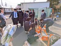 今回の販売会は、単に物を売るだけでなく、生産から加工、そして販売という「6次産業化」の流れを体験することを目的としています。 生徒たちは、お揃いのウィンドブレーカーとバンダナを身にまとい、起業家精神を持って接客に励みました。