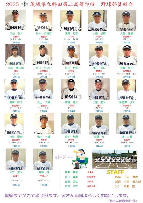 中心に3年生8名、2年生9名、1年生5名、マネージャー4名の総勢26人で