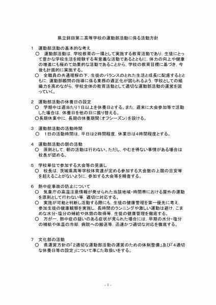 県立鉾田第二高等学校の運動部活動に係る活動方針(令和7年9月25日掲載)
