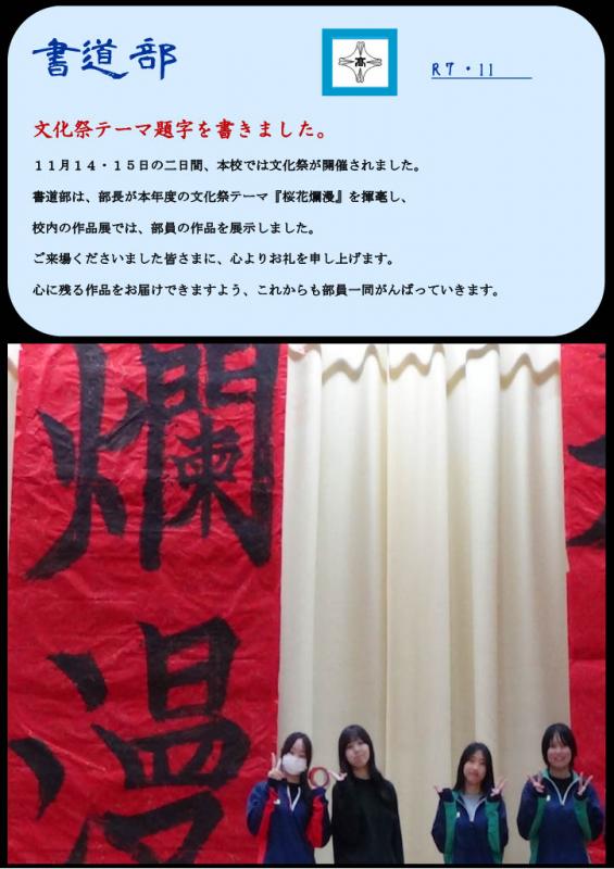 桜芳祭(文化祭)で展示した書道部の作品です。
