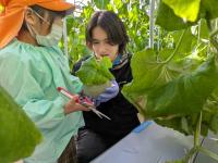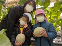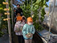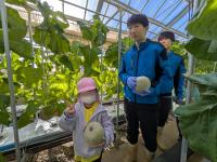 鉾田幼稚園の園児14名が、本校農場にて秋メロンの収穫を体験しました。収穫から箱詰めまでを本校生徒が優しく教え、収穫後は味を確かめてもらいました。